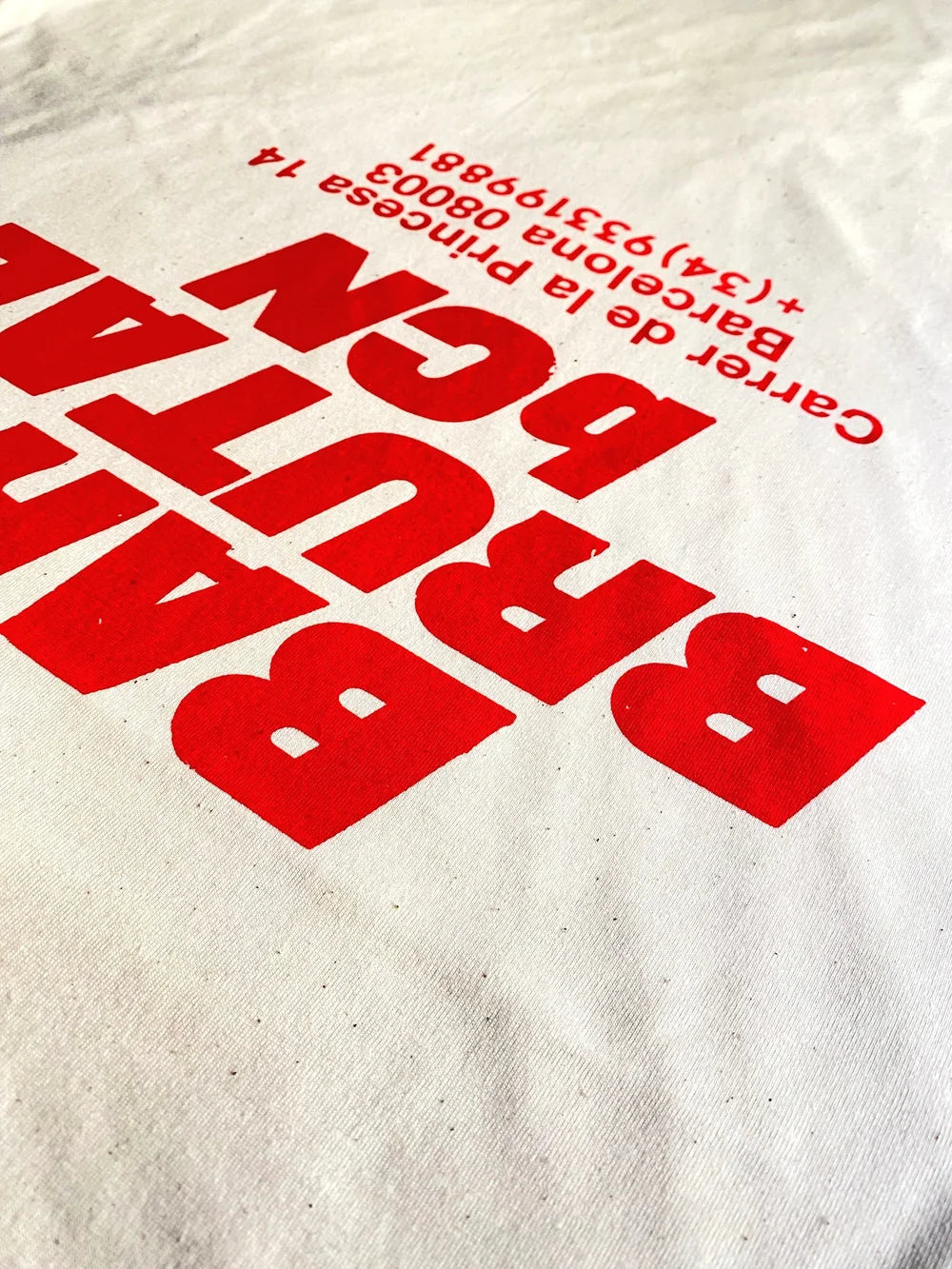 2-sided screen-printed on 180gsm 100% ORGANIC RING-SPUN COMBED COTTON Stanley/Stella Creator Natural Raw shirt by New Town Lab in Poblenou - Barcelona following a typography workshop at L’Automatica, in Gracia - Barcelona.