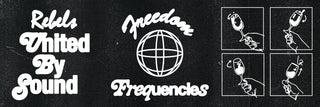 Michele también creó una tipografía manuscrita para incorporar el nombre de la colaboración "Freedom Frequencies" y el lema "Rebels, unidos por el sonido" como mensajes centrales.